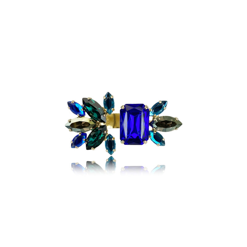 Colors: Gold, emerald, blue zircon, iridescent green and capri blue.
