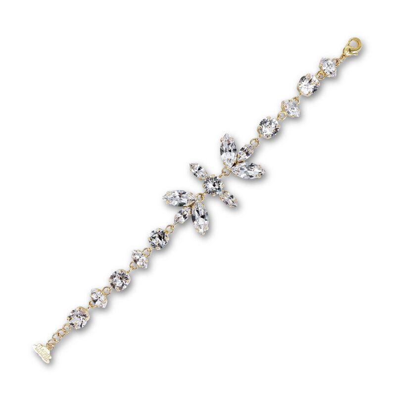 Description: Adjustable bracelet with hook closure, embellished with Swarovski Crystals.
