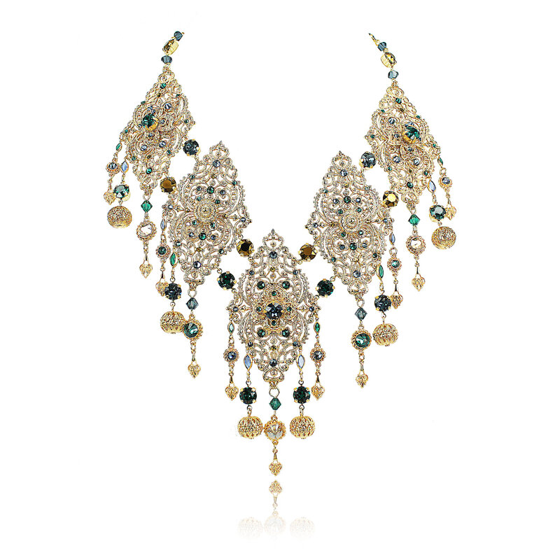 Il design barocco e sofisticato, impreziosito da raffinati dettagli traforati e pendenti, dona movimento e luce al decoltè, rendendo questi orecchini perfetti per le occasioni speciali o per dare un tocco glamour ad un outfit elegante.