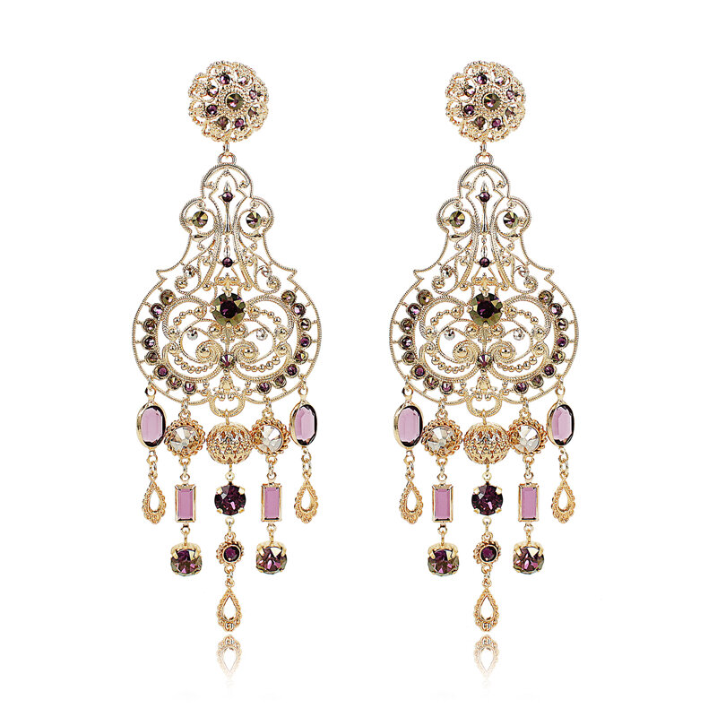 Il design barocco e sofisticato, impreziosito da raffinati dettagli traforati e pendenti, dona movimento e luce al viso, rendendo questi orecchini perfetti per le occasioni speciali o per dare un tocco glamour ad un outfit elegante.