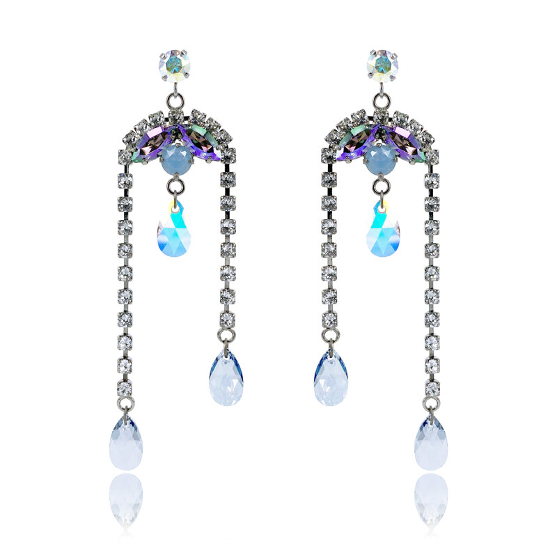 La luna osserva silenziosa mentre Cenerentola fugge via, lasciando dietro di sé una scia di luce. Gli Orecchini Gocce di Luna catturano quella malinconia dolce e scintillante: cristalli pendenti che ondeggiano ad ogni passo, riflettendo la luce con un’eleganza eterea.